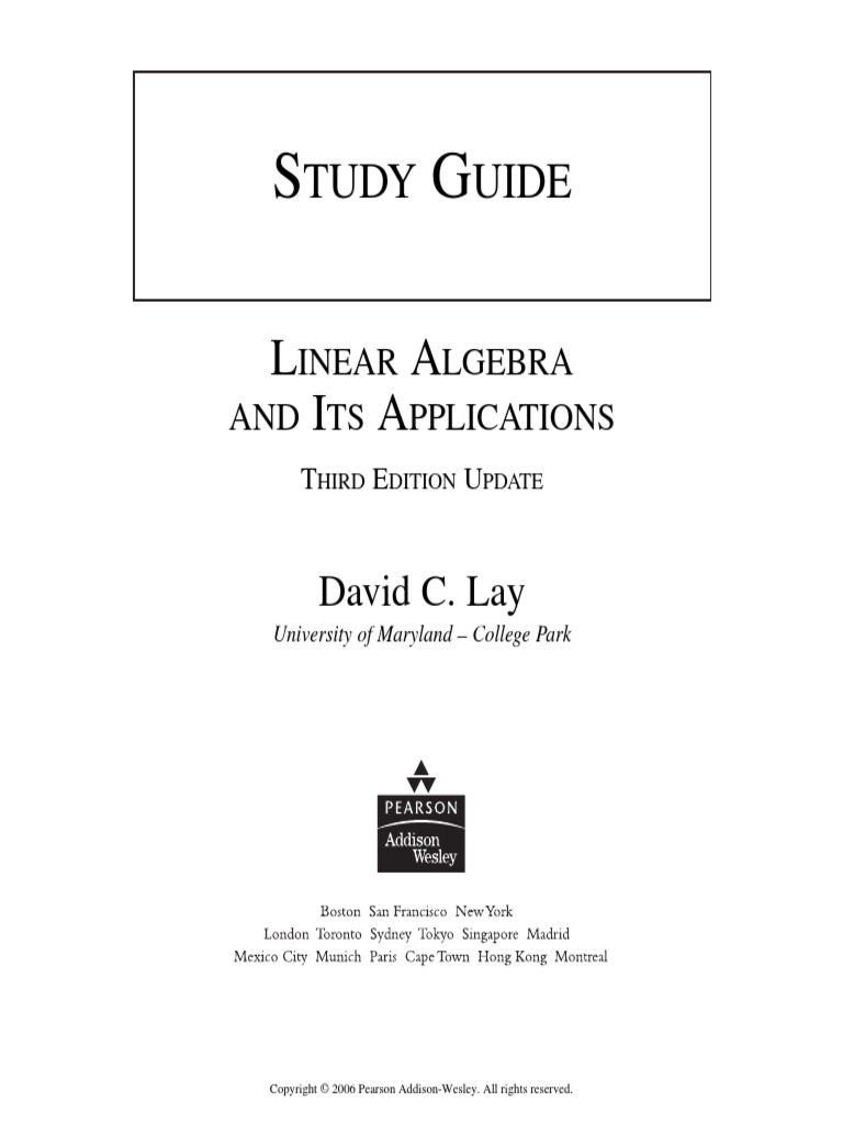 David C Lay Study Guide To Linear Algebra And Its Applications 3rd Edition Addison Wesley 2005 Pdf Linear Algebra Eigenvalues And Eigenvectors